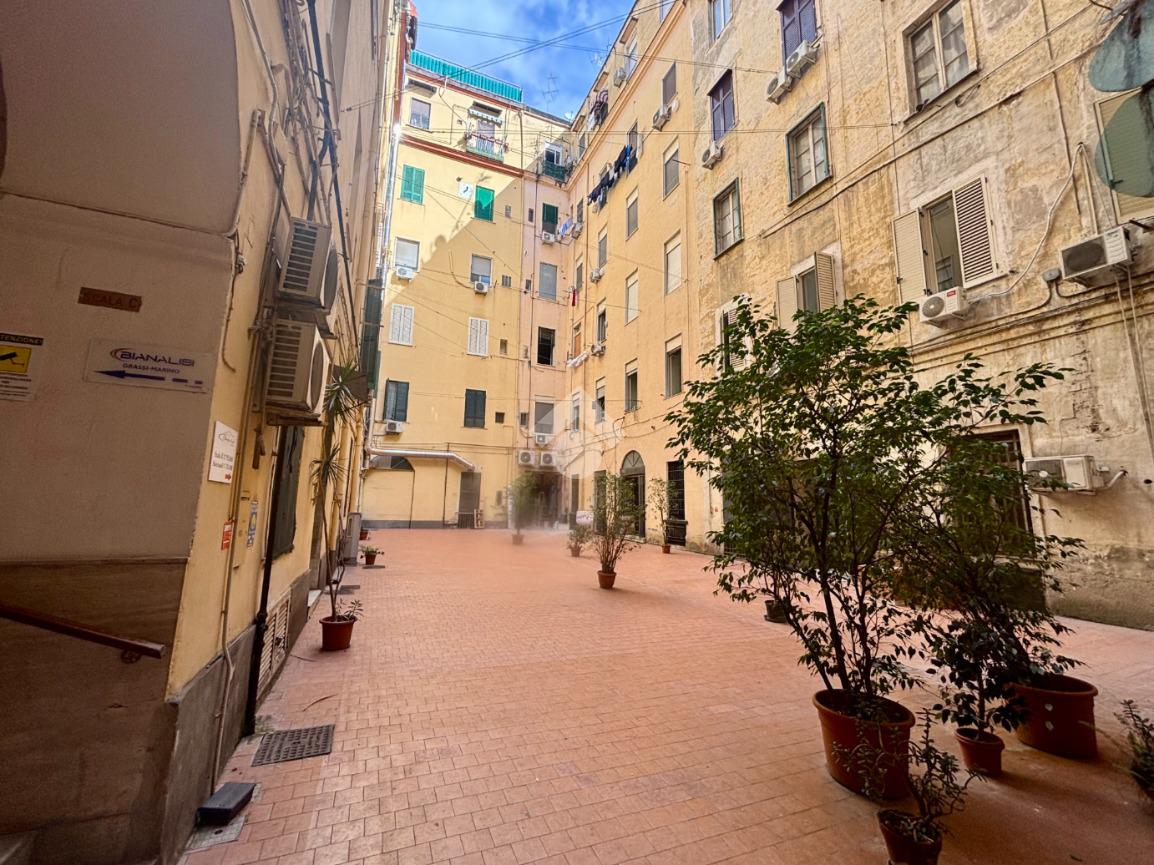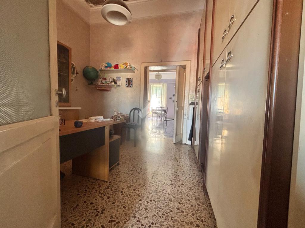 Appartamento in vendita a pochi passi da Via Nazionale e da Piazza Nazionale. Questa proposta rappresenta un'ottima opportunità sia per investimento sia per uso personale. L'immobile è composto da un ingresso che conduce a un ampio salone, una cucina, due spaziose camere dotate di balcone, uno studio, un bagno, due ripostigli e cabine armadio. Situato al piano alto di un edificio con ascensore, l'appartamento necessita di ristrutturazione e offre doppi affacci, sia interni sul cortile sia sulla vivace Via Nazionale.